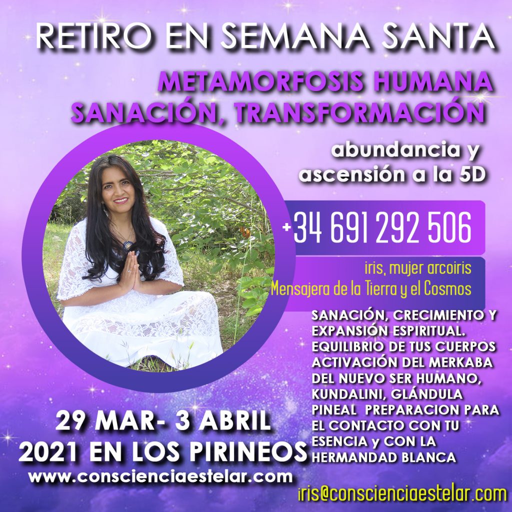 Querida Familia de luz desde el 29 de marzo al 3 de abril de 2021 estais invitados al retiro de Semana Santa en los Pirineos-España (Monte Perdido) metamorfosis humana y preparación para el contacto sanación, crecimiento y expansión espiritual; nos reuniremos en el corazón de los Pirineos Monte Perdido-España al cual os invitamos para que […]